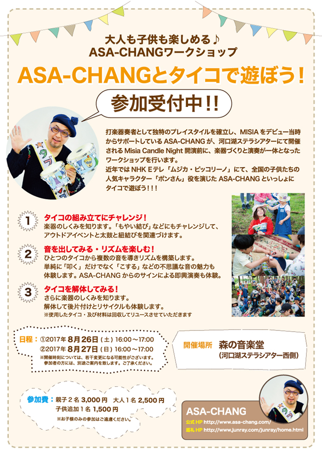 ライヴ前のひととき、Misia Candle Nightのバンドメンバーであるパーカッション奏者・ASA-CHANGによるワークショップを開催いたします。